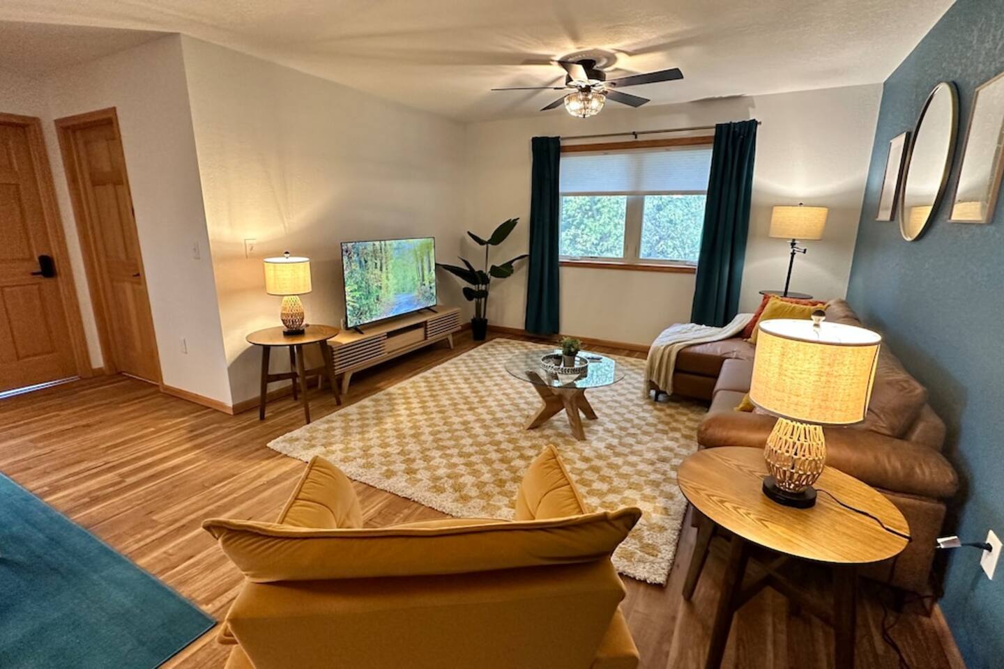 Welcome to "New Heights" – where your vacation dreams reach new levels of awesomeness, and the fun never stops! We've got a queen bed that's cozier than a bear in a onesie, and twin bunk beds for those who want to relive their youth camp escapades. Your queen room even comes with its very own TV, so you can have movie night in bed and feel like the monarch of the remote! Now, hold onto your hats because the pièce de résistance is a deck, perched up to the heavens, that's swankier than a penguin in a tuxedo! And with a view that overlooks the Upper Iowa River and Trout Run Trail, counting geese has never been so enchanting! Location? You're so close to downtown Decorah that you can practically smell the coffee from any one of our local roasteries. Plus, Luther College is just a stone's throw away, making it a breeze to catch that big game or musical performance. And with Dunnings Spring Park just outside your doorstep, as well as the 20-plus miles of hiking and biking trails, you'll have more adventures than you can shake a hiking stick at. But wait, there's more! During your stay, you can even rent our electric bikes (e-bikes) to cruise around town, explore the famous Trout Run Trail, and pedal through picturesque farmland. It's like having your own personal tour guide, but with the added perk of not breaking a sweat. Now, let's talk about fueling up for your adventures. We have a coffee bar that's fully stocked with locally made flavors of coffee that'll make your taste buds do the happy dance. And our kitchen? Oh, it's stocked with everything you need to whip up a culinary masterpiece or just microwave some popcorn for movie night. Your choice! So, pack your bags, your sense of adventure, and maybe some stretchy pants for all that relaxation. Get ready to reach "New Heights" in Decorah – book now for a vacation that'll leave you saying, "I can't believe we didn't do this sooner!"
